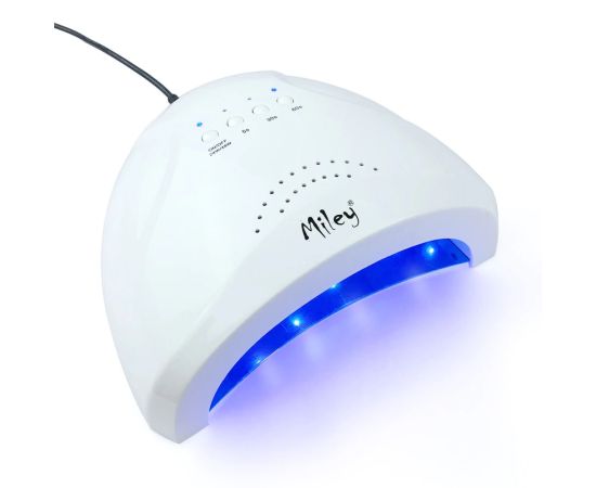 UV LED Lampe Miley SUNone 48 W – begeistert ab der ersten Anwendung! Ideal für Salons, aber auch für den Heimgebrauch geeignet. Die 48 W Leistung trocknet sowohl Gelpolitur als auch Farbgele, was Ihnen bei allen Maniküre-Techniken hilft. Mit einer Lebensdauer von bis zu 40.000 Stunden ist die kompakte und minimalistische Gestaltung der Lampe auch ideal für Reisen. Sie ist mit 4 Tasten ausgestattet: eine für das Ein-/Ausschalten und die anderen 3 zur Einstellung der Trocknungszeit – 5s, 30s, 60s.