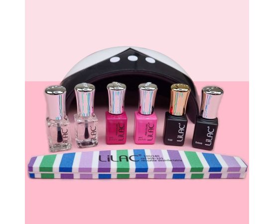 Lilac Gellack - Intensiv pigmentiert, mittlere Viskosität und selbstglättend, leicht und schnell aufzutragen. Deckt die Oberfläche bereits ab der ersten Schicht vollständig ab. Härtet 60/120 Sekunden in der LED/UV-Lampe aus. Muss mit einem Top Coat versiegelt werden.